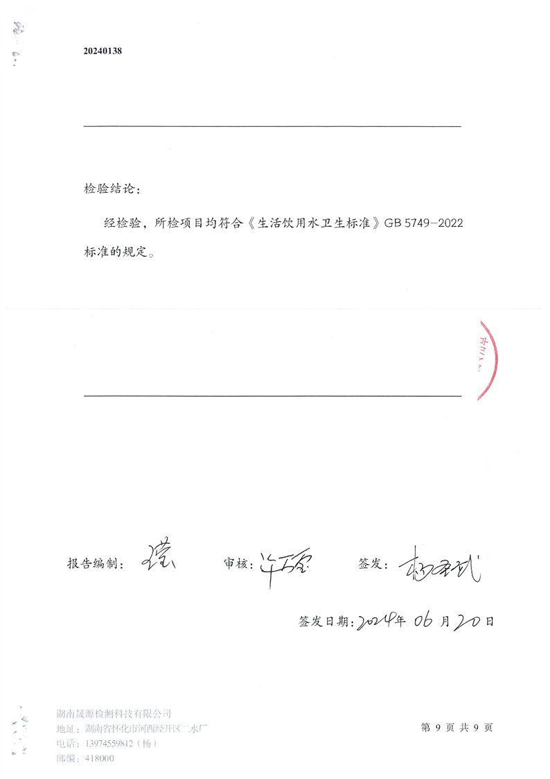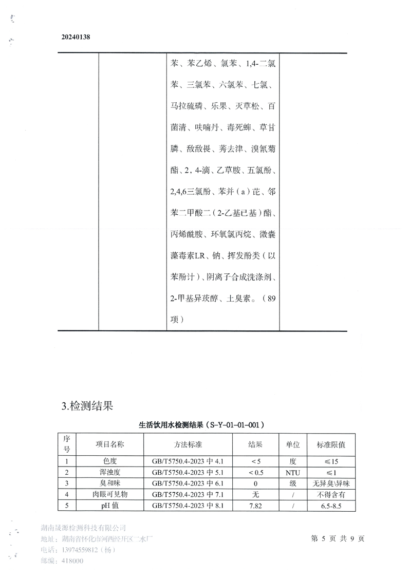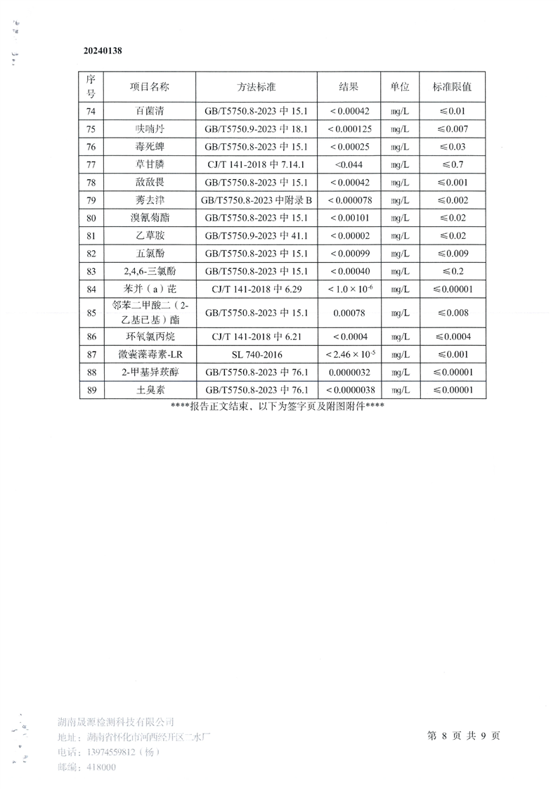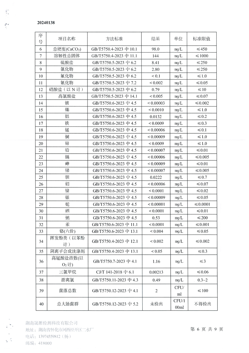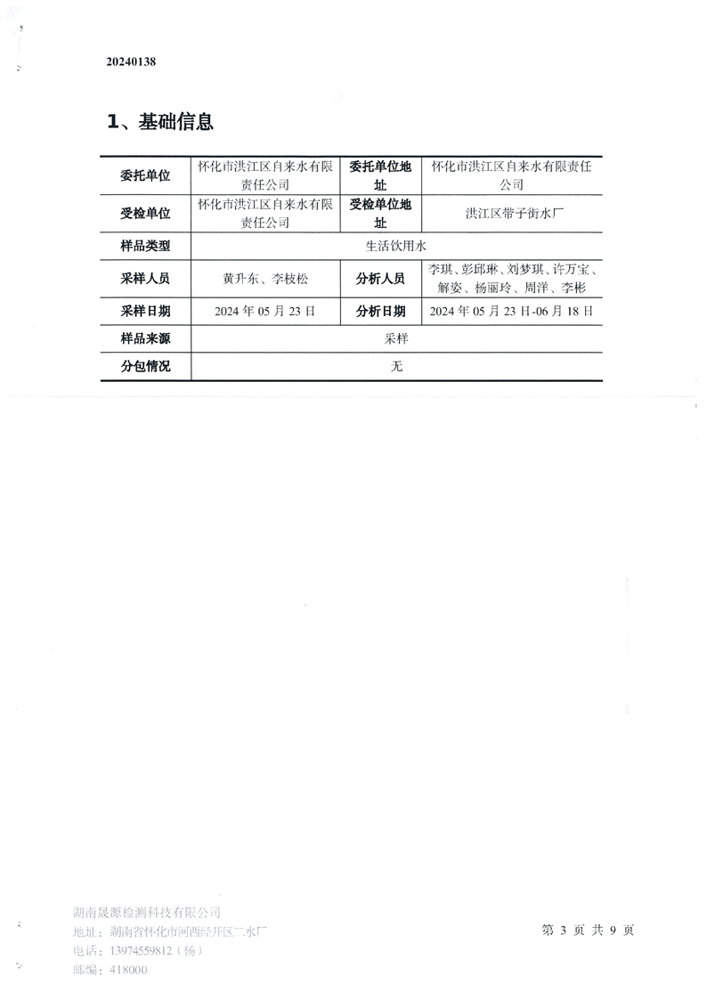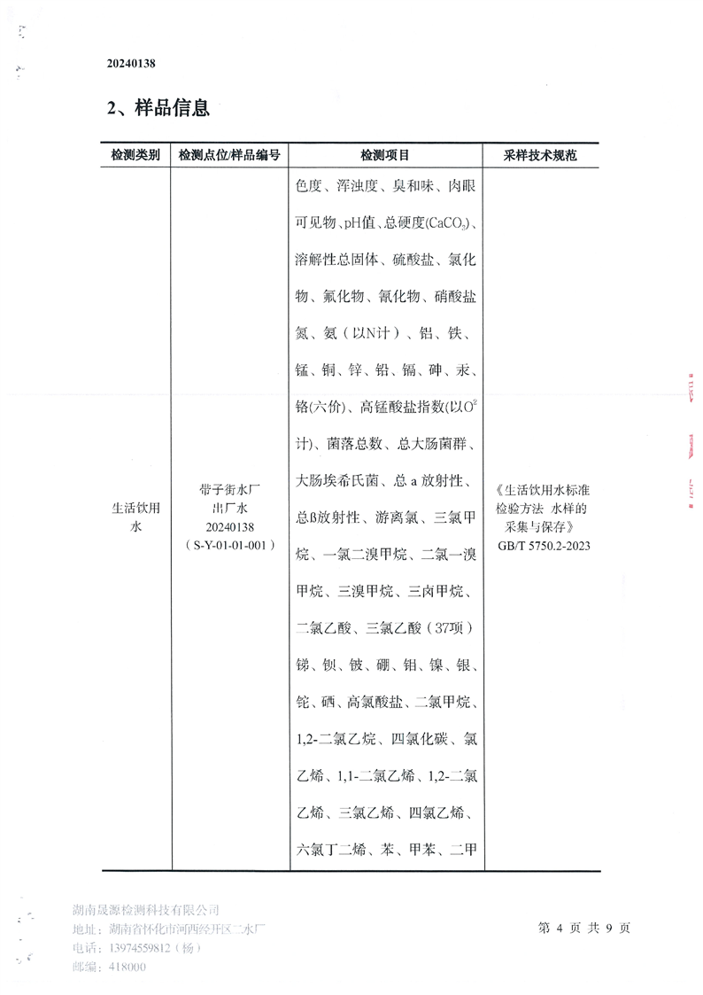 帶子街水廠(chǎng)水廠(chǎng)2024年半年檢測報告